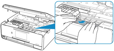 Når du flytter printhovedholderen, skal du holde på det øverste af printhovedholderen og langsomt lade den glide helt til højre eller venstre.