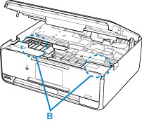 - ¿Queda papel en los espacios vacíos a izquierda y derecha (B) de la impresora?