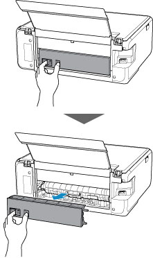Aprire il coperchio del vassoio posteriore ed estrarre il supporto per la carta.