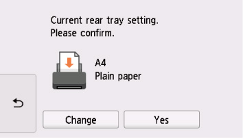 Če želite dokončati določanje nastavitev papirja v zadnjem pladnju, na zaslonu na dotik izberite Da (Yes).