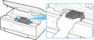 Khi di chuyển khay chứa đầu in, giữ phần trên cùng của khay chứa đầu in và trượt từ từ sang gần hết cạnh phải hoặc trái.