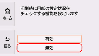 用紙設定の不一致を検知する機能を無効にするには、以下の手順で操作してください。