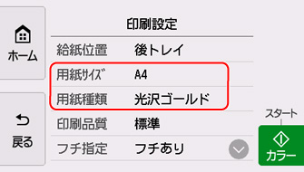用紙サイズと用紙種類を、後トレイの用紙に合わせる