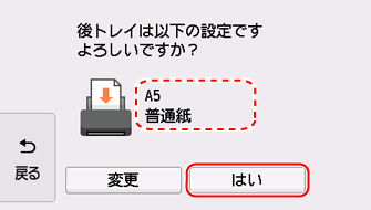 用紙サイズと用紙種類を確認したあと、[はい]を選んでください。