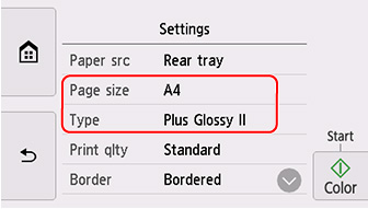 2. Укажете информация за хартията (размер на хартията и тип носител), която сте проверили в стъпка 4.