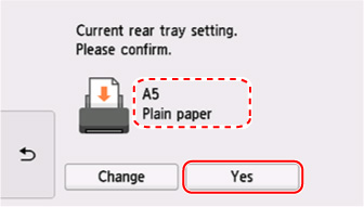 Потвърдете, че показваната информация за хартията съвпада с настройките за печат, след което изберете Да (Yes).