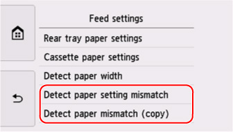 Wählen Sie Falsche Pap.einst. erk. (Kopier.) (Paper settings mismatch (Copy)) oder Paper settings mismatch (Other).