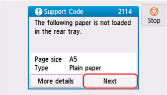 Näiteks printimise/kopeerimise jätkamiseks tagumisele alusele laaditud paberi ja printeris registreeritud paberiinfo mittevastavuse korral järgige alltoodud etappe.