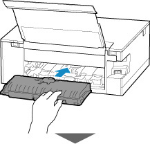 7. Cieši turiet iestrēgušo papīru ar abām rokām un lēnām izvelciet to ārā.