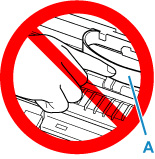 Når du fjerner en hindring for skrivehodeholderens bevegelser, må du passe på at du ikke berører den gjennomsiktige filmen (A).