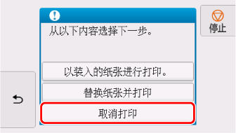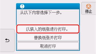 注释- 根据打印机设置的不同,“以装入的纸张进行打印。”可能不会出现。
