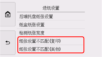 选择纸张设置不匹配(复印)或纸张设置不匹配(其他)。