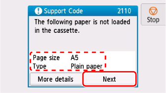Pilih Stln krts tdk sesuai (Penyalinan)(Paper settings mismatch (Copy)) atau Stln krts tdk sesuai (Lainnya)(Paper settings mismatch (Other)).