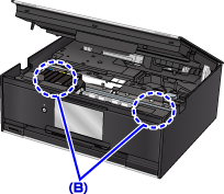 - Има ли останала хартия в лявото и дясното празно пространство (B) на принтера?