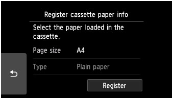 Selezionare Registra (Register) sul touchscreen del cassetto per completare le impostazioni carta del cassetto.