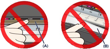 Ne dotikajte se prozornega filma (A) ali belega pasu (B).