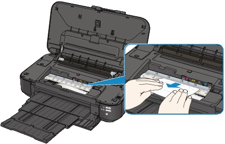 Če se papir strga, lahko košček papirja ostane v tiskalniku. Preverite naslednje in odstranite košček papirja, ki je ostal v napravi.