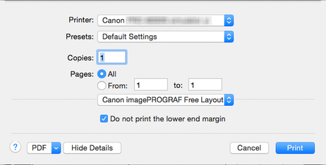 Clicking Do not print the lower end margin creates a print object that does not include the lower end margin.