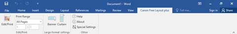 Il nastro Canon Free Layout plus potrebbe non essere visualizzato nelle applicazioni di Office Word, PowerPoint o Excel e le funzioni di Free Layout plus potrebbero non essere disponibili.