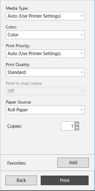 Facendo clic su Avanti (Next) si chiudono le modifiche e si passa alla schermata delle impostazioni di stampa.