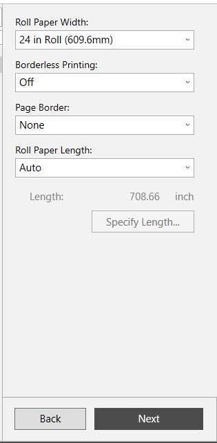 Visualizza l'impostazione Lunghezza di carta in rotoli (Roll Paper Length).