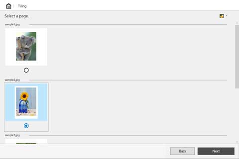 Nella modalità Affiancamento, dividere una singola pagina di dati di input, quindi procedere con la stampa. È possibile allineare le stampe e incollarle insieme per creare un'immagine stampata più grande.