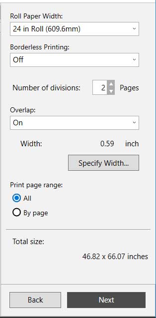 Nota- Impostando Stampa senza bordo (Borderless Printing) su Attivato (On), la sovrapposizione viene eseguita solo a destra di ciascuna pagina e la pagina all'estrema destra viene stampata sulla larghezza totale della carta in rotoli.
