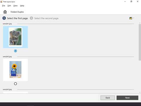 Nota- Qualora si desideri selezionare il layout di diverse immagini di dati per il fronte/retro, mentre Free Layout plus è in funzione, aprire gli altri dati e ripetere l'operazione nella fase 1.