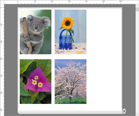 Nessa área, você pode dispor as imagens e definir configurações de impressão.