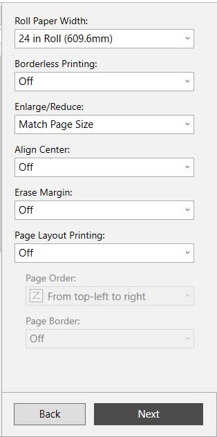 Настройка макета и ширины рулона бумаги с предварительным просмотром результатов печати.
