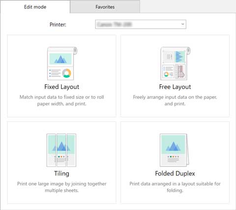 Aparece cuando hace clic en la pestaña Favoritos (Favorites). Puede seleccionar una combinación de una impresora, un modo de edición y una configuración de edición/impresión que se haya registrado anteriormente.