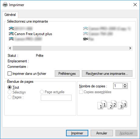 Sélectionnez Canon Free Layout plus à partir des imprimantes que vous pouvez utiliser.