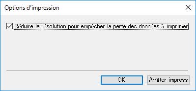 Il est possible d'améliorer les résultats d'impression en cochant Réduire la résolution pour empêcher la perte des données à imprimer dans Options d'impression.