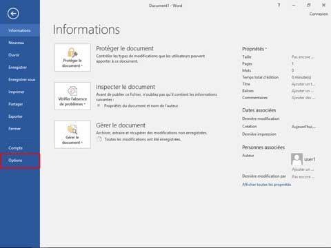 Sélectionnez Options depuis le menu Fichier dans l'application Office.