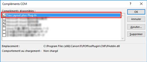 Vous pouvez également activer les compléments pour afficher Canon Free Layout plus.