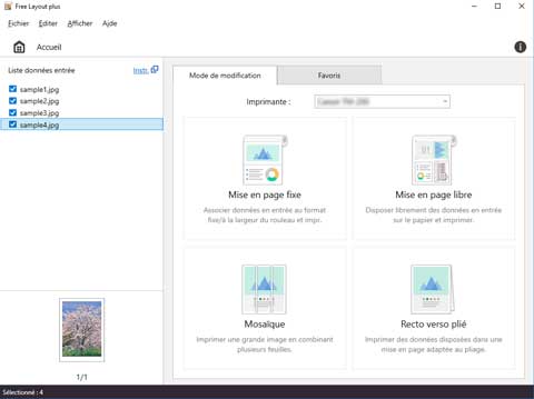 Lorsque vous démarrez Free Layout plus, l'écran Accueil s'affiche.