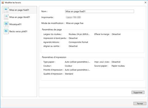 Vous pouvez enregistrer une combinaison d'imprimante, de mode de modification et de paramètres de mode de modification, et la sauvegarder dans les Favoris.
