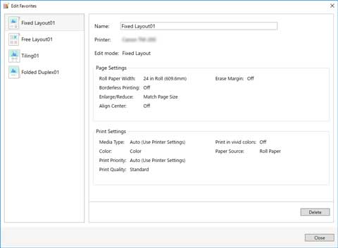 È possibile registrare una combinazione di stampante da usare, modalità di modifica e impostazioni nella modalità di modifica e salvarla su Preferiti (Favorites).
