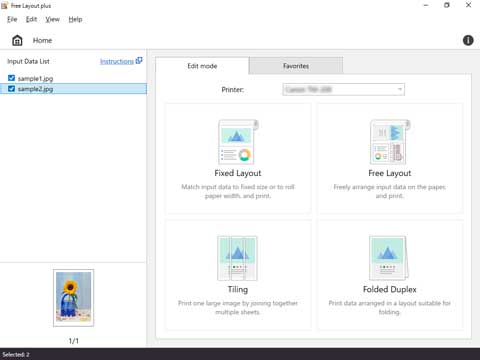 Selezionare il layout e stampare i dati usando diverse funzioni di Free Layout plus.