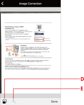 - Atingeţi pentru a roti imaginea cu 90 de grade. Cu toate acestea, imaginea se roteşte doar pe ecran, acest lucru nu va fi reflectat în rezultatul imprimării.