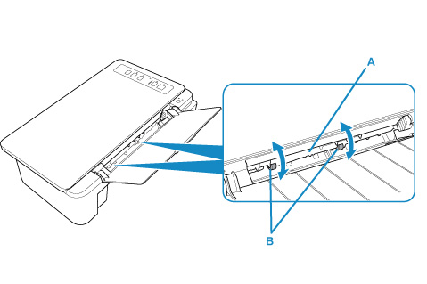 Dacă problema nu s-a rezolvat după curăţarea rolelor de alimentare cu hârtie de pe tava din spate, opriţi alimentarea, deconectaţi cablul de alimentare, apoi ştergeţi rolele de alimentare cu hârtie (B) cu un tampon de bumbac umezit sau cu un material asemănător în timp ce rotiţi manual piesa din plastic albă (A). Repetaţi această operaţie de cel puţin două ori. Nu atingeţi rolele cu degetele.