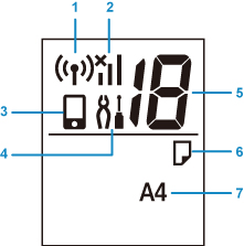 จำนวนชุดของสำเนา รหัสการบำรุงรักษา รหัสข้อผิดพลาด หรือไอคอนต่างๆ จะแสดงบน LCD