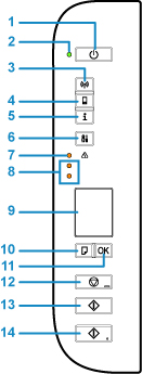 Lampa din partea superioară indică starea cartuşului FINE negru, iar lampa din partea inferioară indică starea cartuşului FINE color.