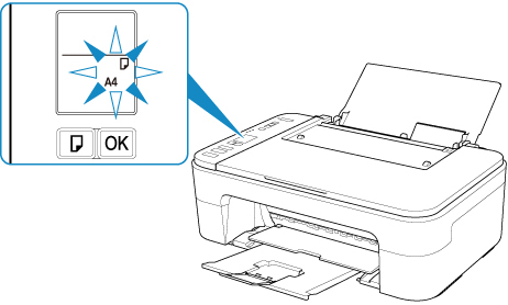 După încărcarea hârtiei în tava din spate, starea hârtiei și dimensiunea hârtiei curente clipesc pe LCD.