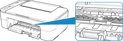 Dacă problema nu se rezolvă după ce efectuaţi din nou curăţarea, este posibil ca ieşiturile din interiorul imprimantei să fie pătate. Ştergeţi cerneala de pe ieşituri utilizând un tampon de bumbac sau ceva asemănător.