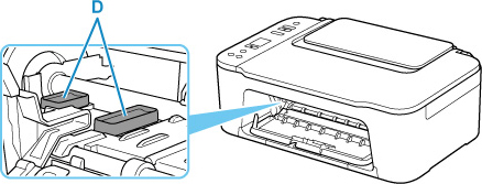 Raak de onderdelen D niet aan. Als u ze toch aanraakt, drukt de printer mogelijk niet goed af.
