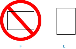قم دائمًا بتحميل الورق بالاتجاه الطولي (E). يمكن أن يؤدي تحميل الورق بالاتجاه العرضي (F) إلى انحشار الورق.