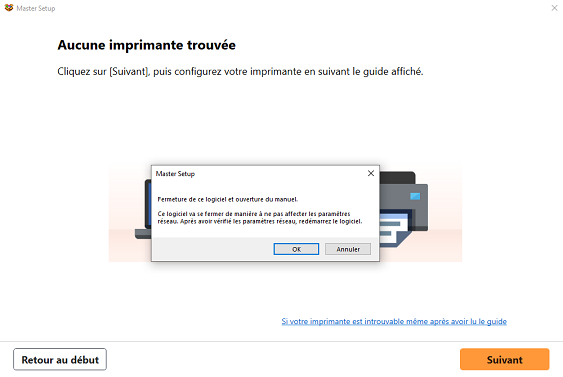 Si l'imprimante n'est pas détectée après que vous avez essayé de reprendre la configuration depuis le début, passez à [Étape 2].