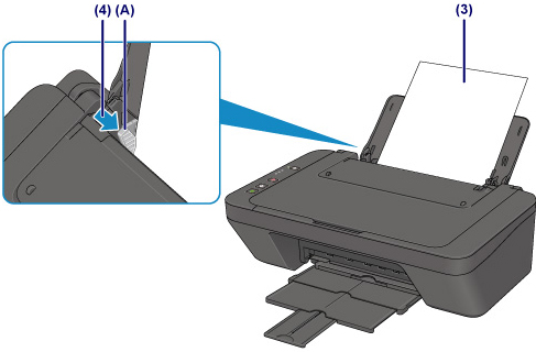 3. Slide the paper guide (A) to the left, and load the paper against the far right of the rear tray WITH THE PRINT SIDE FACING YOU.