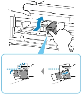 ثم قم بتركيب خراطيش FINE مرة أخرى. ادفع خرطوشة FINE لأعلى حتى تسمع صوت طقطقة يدل على استقرارها في مكانها.